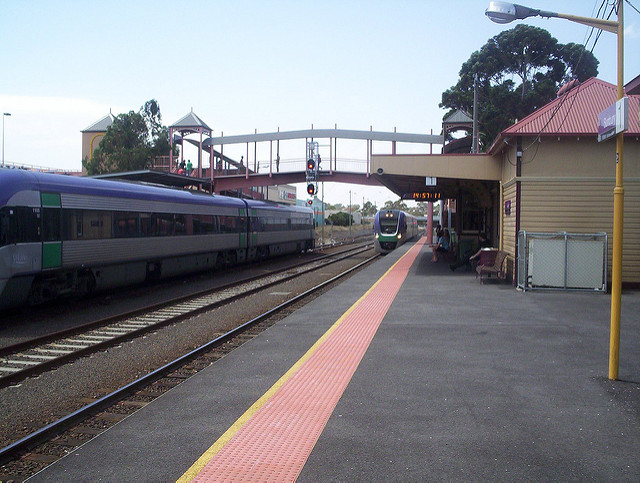 Sunbury Railway Station is connected by Metro services to Melbourne and by V/Line services on the Bendigo train line to both Melbourne and country Victoria. V/Line services are not as frequent as those on the metropolitan Metro service — an approximate hourly frequency is provided by V/Line on weekdays, although on weekends service levels can be as infrequent as once every 80 minutes.
